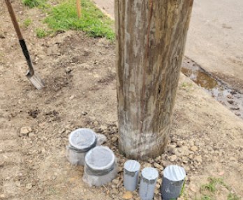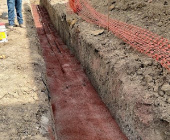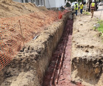 - All 6” primary schedule 40 conduit pathway was encased with 59 yards of concrete mixed with red dye